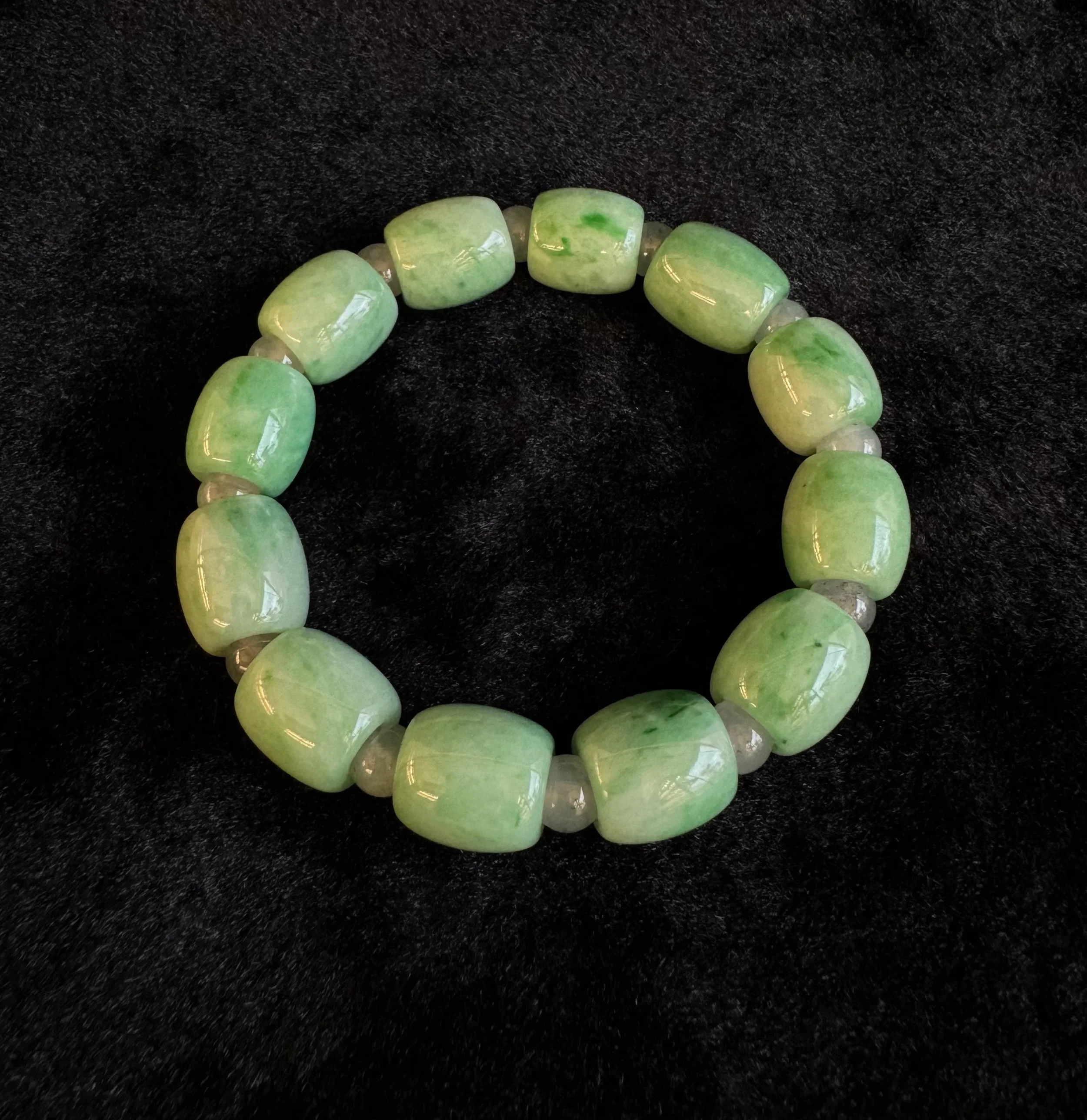 精選翡翠珠子精心串聯,展現出獨特的綠色光澤與細膩質感。佩戴此手串不僅增添風采,亦寓意帶來平安與好運。