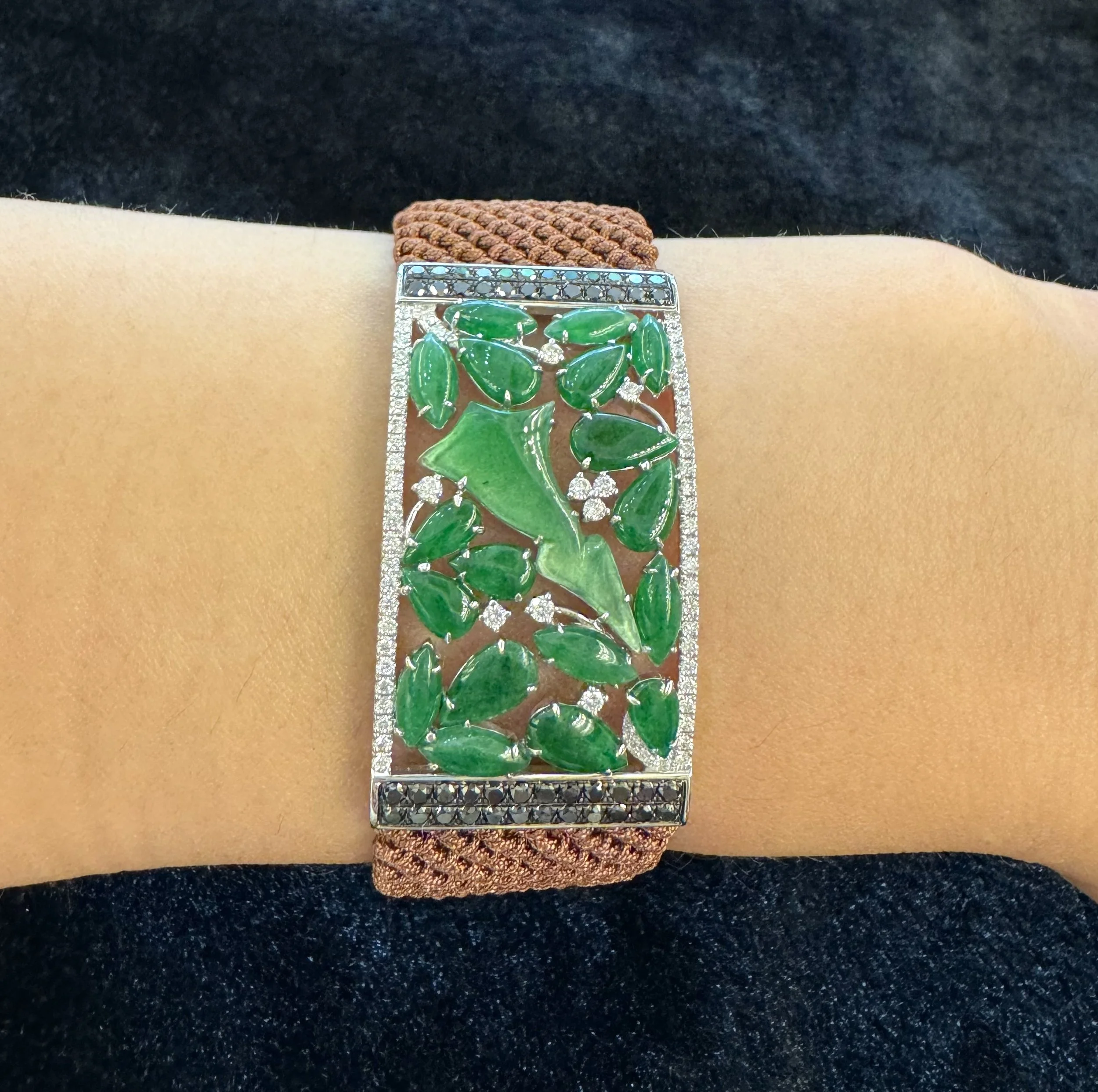 珠寶類別 > 自創手牌 自創手牌 自家創作手牌,精心挑選翡翠原石,色澤鮮亮透明,質地細膩。經典設計與獨特編織設計,每塊手牌不僅飾品,更是傳承與創新的藝術表現。 本店有更多自創手牌產品,歡迎查詢 聯絳我們