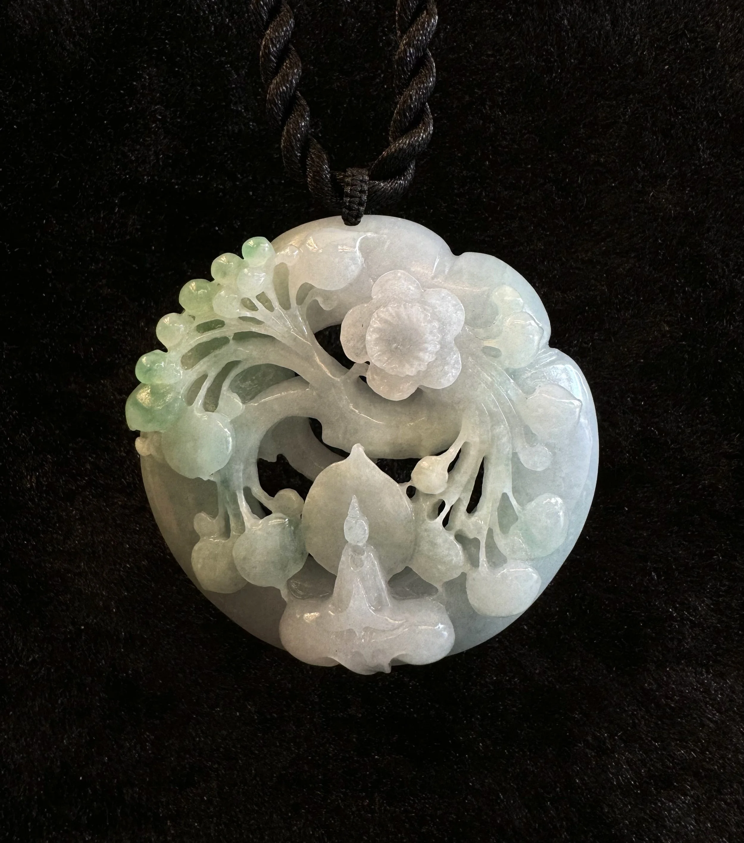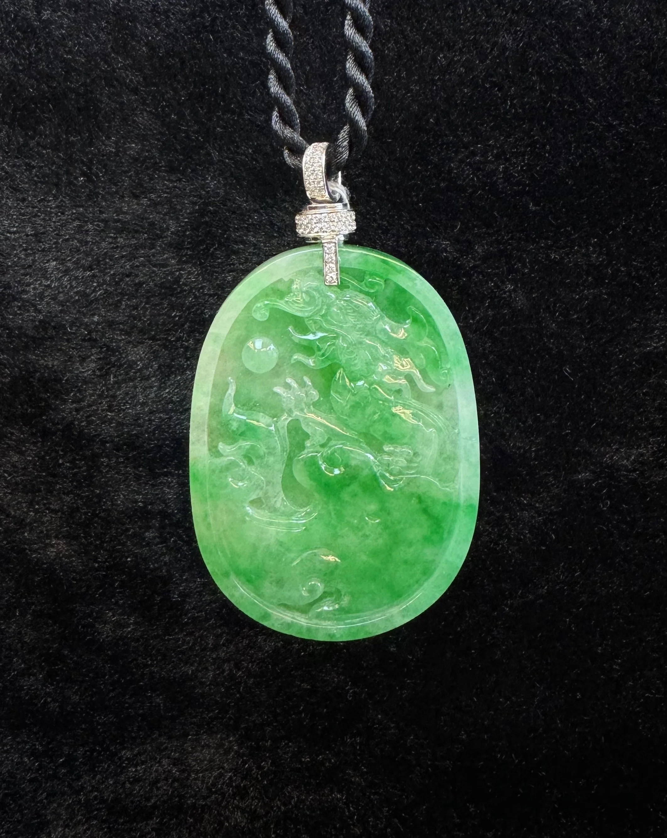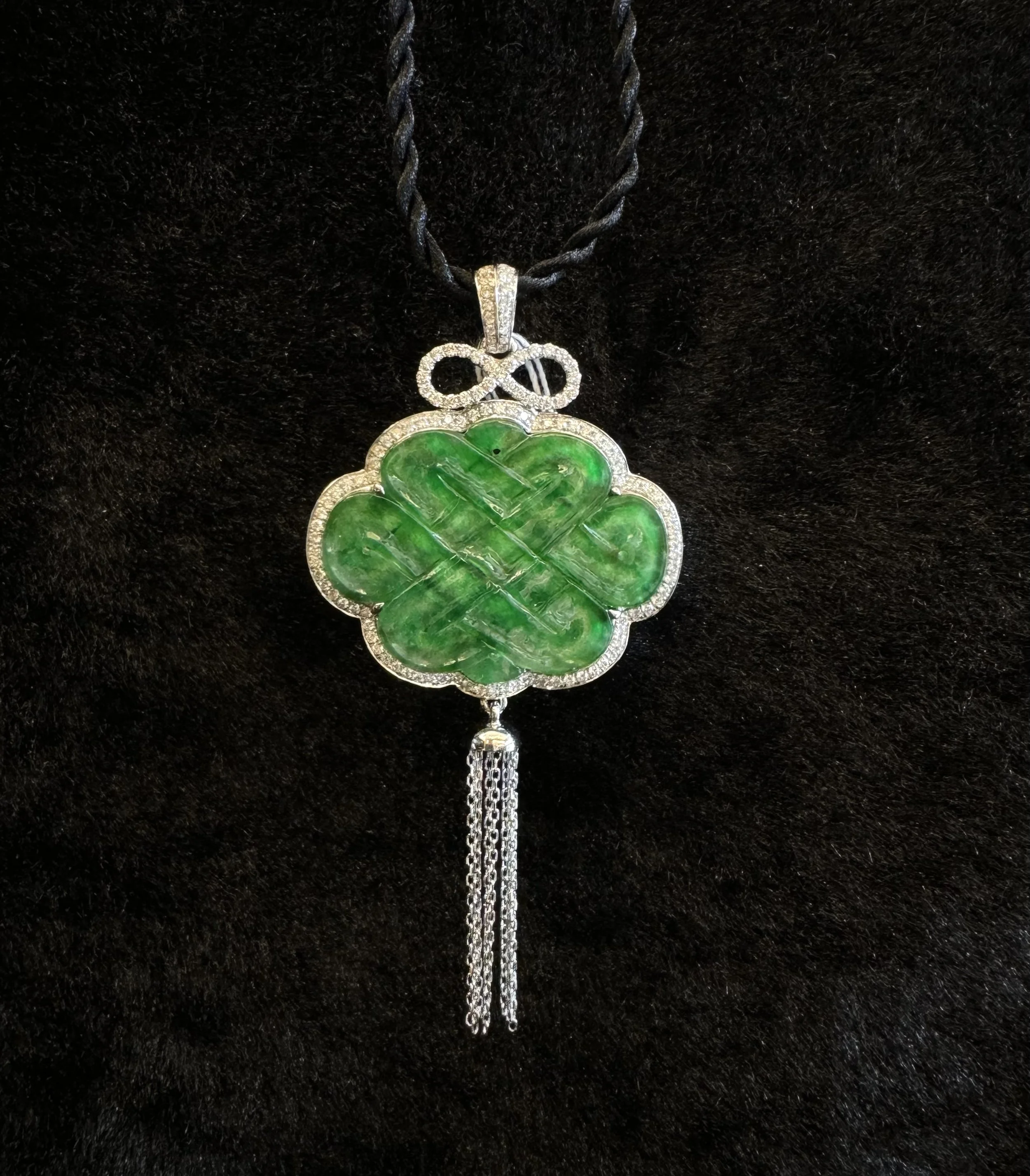 玉墜,精緻典雅,常見於項鍊或手鍊之上。每件玉墜均由上等玉石精心雕琢,其溫潤光澤與柔和色彩,象徵清純與寧靜,增添佩戴者的高貴氣質。